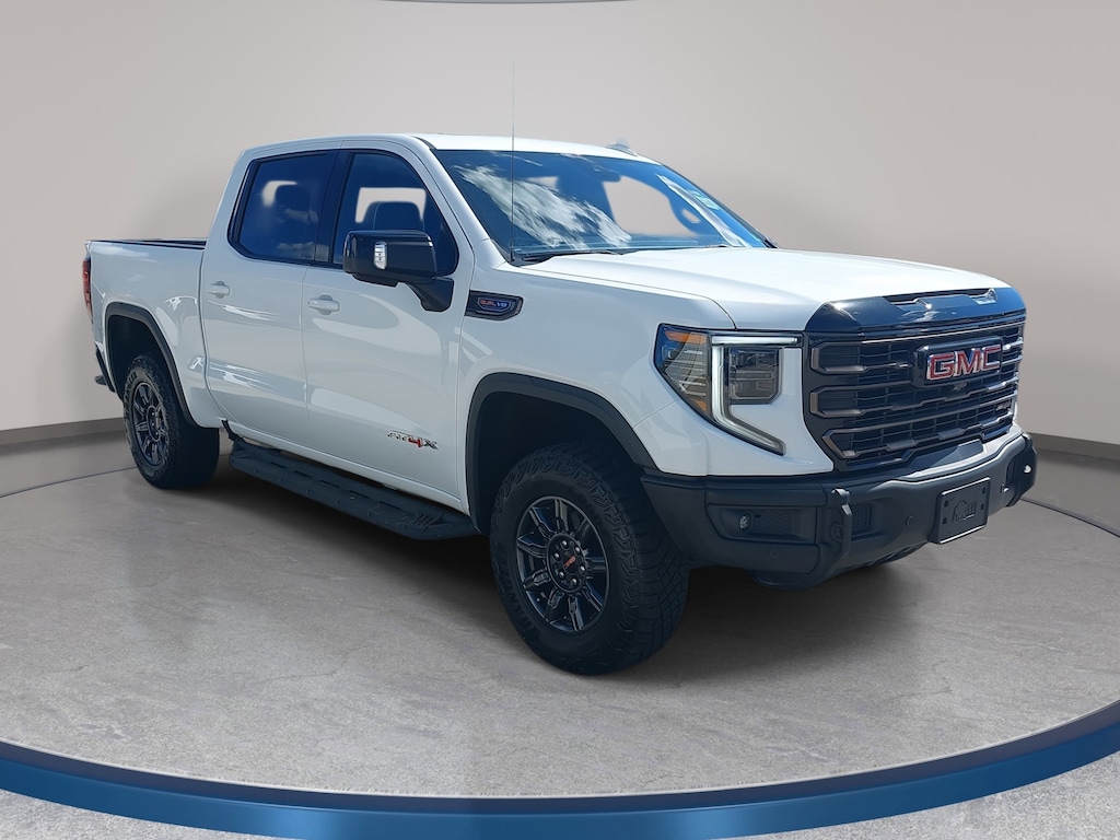 CARFAX One-Owner. Summit White 2024 GMC Sierra 1500 AT4X 4WD 10-Speed Automatic EcoTec3 6.2L V8 LOCAL TRADE, LOW MILEAGE, ONE-OWNER, 10-Speed Automatic, 4WD, Obsidian Rush Leather.