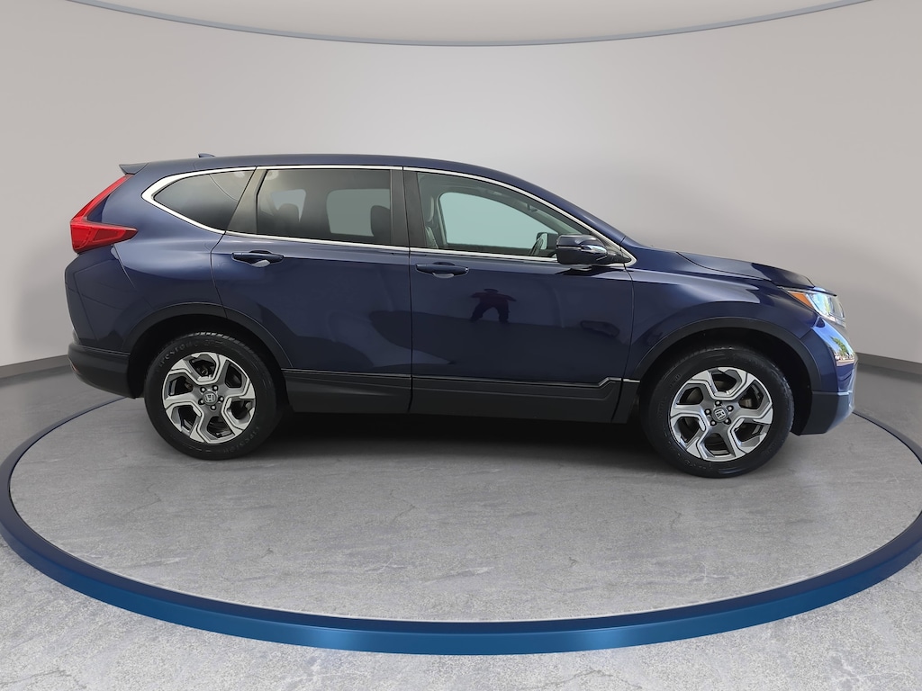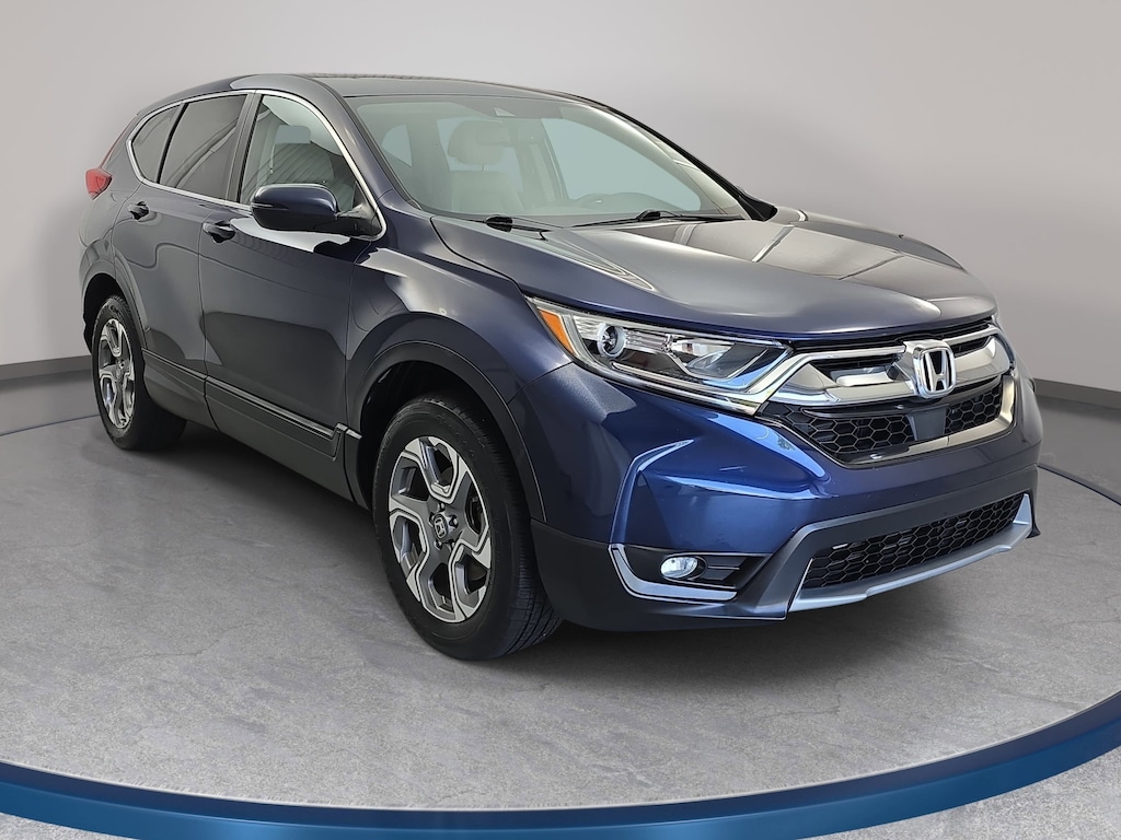 Clean CARFAX. CARFAX One-Owner. Obsidian Blue Pearl 2017 Honda CR-V EX-L AWD CVT 1.5L I4 DOHC 16V 18" Alloy Wheels, 4-Wheel Disc Brakes, 8 Speakers, ABS brakes, Air Conditioning, Alloy wheels, AM/FM radio: SiriusXM, Apple CarPlay/Android Auto, Auto High-beam Headlights, Auto-dimming Rear-View mirror, Automatic temperature control, Blind Spot Information (BSI) System warning, Brake assist, Bumpers: body-color, Delay-off headlights, Dual front impact airbags, Electronic Stability Control, Exterior Parking Camera Rear, Four wheel independent suspension, Front Bucket Seats, Front dual zone A/C, Front fog lights, Fully automatic headlights, Heated door mirrors, Heated Front Bucket Seats, Memory seat, Occupant sensing airbag, Overhead airbag, Power driver seat, Power Liftgate, Power moonroof, Power steering, Power windows, Radio: AM/FM/HD/SiriusXM Audio System, Rear anti-roll bar, Remote keyless entry, Speed-sensing steering, Steering wheel mounted audio controls, Tachometer, Telescoping steering wheel, Tilt steering wheel.