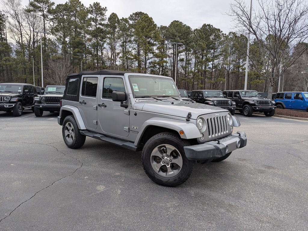 Billet Silver Metallic Clearcoat 2018 Jeep Wrangler JK Unlimited Sahara 4WD 5-Speed Automatic 3.6L V6 24V VVT Alpine 9-Speaker w/All Weather Subwoofer, Connectivity Group, Driver Height Adjuster Seat, Front Seat Back Map Pockets, Heated Front Seats, Leather Trimmed Bucket Seats, Trailer Tow Group, Trailer Tow w/4-Pin Connector Wiring, Uconnect Voice Command w/Bluetooth, Vehicle Information Center.