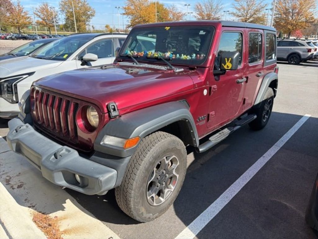 Clean CARFAX. CARFAX One-Owner. Snazzberry Pearlcoat 2021 Jeep Wrangler Unlimited Sport S 4WD 8-Speed Automatic 2.0L I4 DOHC LOCAL TRADE, ONE-OWNER, Automatic Headlamps, Deep Tint Sunscreen Windows, Front 1-Touch Down Power Windows, Leather Wrapped Steering Wheel, Power Heated Mirrors, Quick Order Package 22S Sport S, Remote Keyless Entry, Security Alarm, Speed Sensitive Power Locks, Sport S, Sun Visors w/Illuminated Vanity Mirrors, Wheels: 17" x 7.5" Tech Silver Aluminum.