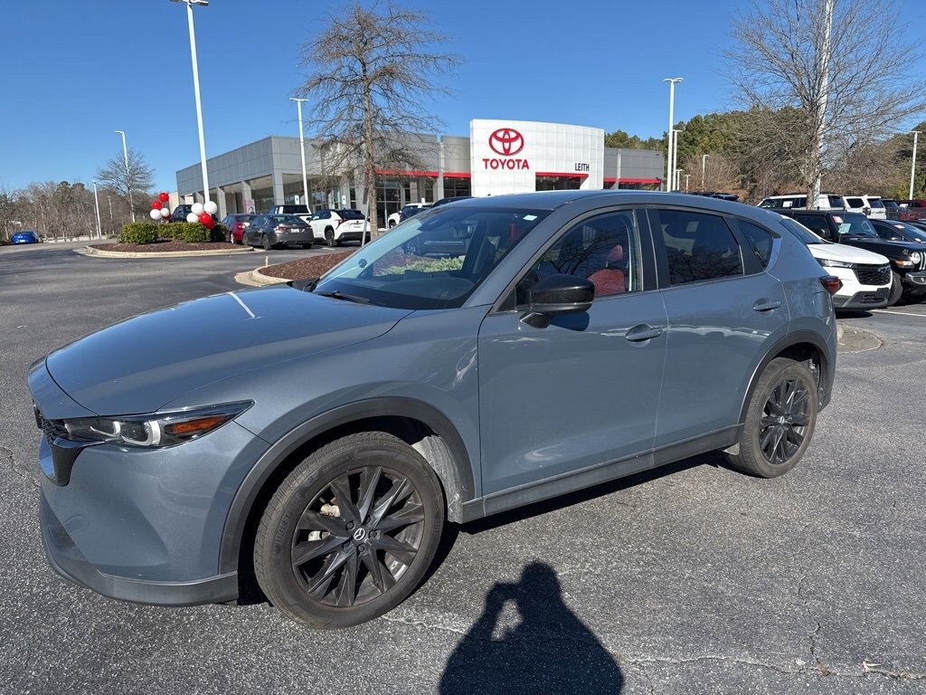 Clean CARFAX. CARFAX One-Owner. Polymetal Gray 2023 Mazda CX-5 2.5 S Carbon Edition AWD 6-Speed Automatic SKYACTIV® 2.5L 4-Cylinder DOHC 16V Clean Carfax 1 Owner/No Accident Vehicle, LOCAL TRADE IN, BACK UP CAMERA, LEATHER, HEATED SEATS, SUNROOF, BLIND SPOT MONITOR, ALL WHEEL DRIVE, SMART KEY W PUSH BUTTON START, LANE DEPARTURE ALERT W STEERING ASSIST, POWER LIFTGATE, 1-OWNER, NO ACCIDENTS, MUST SEE!, 10 Speakers, ABS brakes, Air Conditioning, All-Weather Floor Mats, Auto High-beam Headlights, Auto-dimming Rear-View mirror, Electronic Stability Control, Exterior Parking Camera Rear, Four wheel independent suspension, Front dual zone A/C, Fully automatic headlights, Garage door transmitter: HomeLink, Heated Front Bucket Seats, Leather Seat Trim, Memory seat, Multifunction Commander Control, Power driver seat, Power Liftgate, Power moonroof, Power steering, Power windows, Radio Broadcast Data System Program Information, Rear Bumper Guard, Split folding rear seat, Steering wheel mounted audio controls, Telescoping steering wheel, Traction control, Turn signal indicator mirrors, Wheels: 19 x 7J Aluminum Alloy.