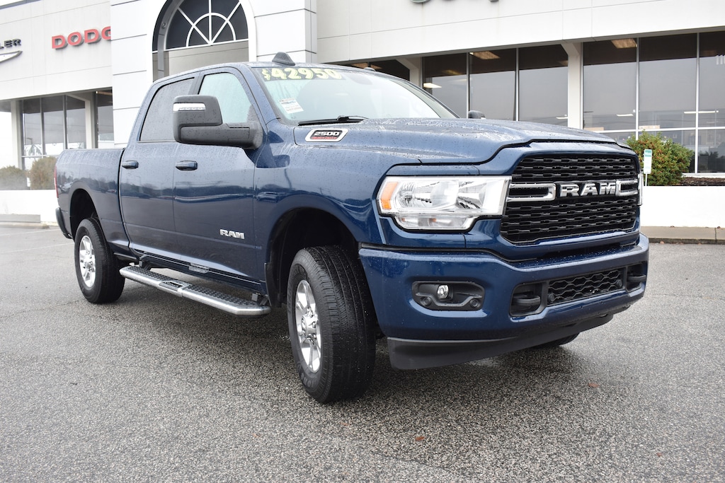 Clean CARFAX. CARFAX One-Owner. Patriot Blue Pearlcoat 2024 Ram 2500 Big Horn 4WD 8-Speed Automatic 6.4L V8 12" Touchscreen Display, 2 Way Rear Headrest Seat, 2nd Row In Floor Storage Bins, 3.73 Axle Ratio, 4 Way Front Headrests, 4-Wheel Disc Brakes, 40/20/40 Split Bench Seat, 4G LTE Wi-Fi Hot Spot, 6 Speakers, 8.4" Touchscreen Display, 9 Alpine Speakers w/Subwoofer, ABS brakes, Active Noise Control System, Air Conditioning, Air Conditioning ATC w/Dual Zone Control, Alexa Built-In, All R1 High Radios, All Radio Equipped Vehicles, Anti-Spin Differential Rear Axle, Apple CarPlay, Auto Power-Folding Mirrors, Bed Utility Group, Big Horn IP Badge, Black Exterior Mirrors, Black Interior Accents, Bluetooth Handsfree Phone & Audio, Body Color Door Handles, Body Color Grille Surround, Brake assist, Bumpers: chrome, Center Hub, Center Stack Storage Drawer, Chrome Flat Cab-Length Side Steps, Cloth 40/20/40 Bench Seat, Compass, Connected Travel & Traffic Services, Connectivity - US/Canada, Delay-off headlights, Disassociated Touchscreen Display, Dual front impact airbags, Dual front side impact airbags, Dual Glove Boxes, Electronic Stability Control, Electronically Controlled Throttle, Emergency communication system: SiriusXM Guardian, Exterior Mirrors Courtesy Lamps, Exterior Mirrors w/Heating Element, Exterior Mirrors w/Supplemental Signals, Foam Bottle Insert (Door Trim Panel), Footwell Courtesy Lamp, For Details, Visit DriveUconnect.com, For More Info, Call 800-643-2112, Forward & Reverse Utility Lights, Front anti-roll bar, Front Armrest w/Cupholders, Front Center Seat Cushion Storage, Front Fog Lamps, Front Seat Back Map Pockets, Fully automatic headlights, Global Telematics Box Module (TBM), Glove Box Lamp, Google Android Auto, GPS Antenna Input, GPS Navigation, HD Radio, Heated door mirrors, Integrated Center Stack Radio, Integrated Voice Command w/Bluetooth, Leather Wrapped Steering Wheel, LED Bed Lighting, Level 1 Equipment Group, Locking Lower Glove Box, Low tire pressure warning, Manual Adjust 4-Way Driver Seat, Manual Adjust 4-Way Front Passenger Seat, Manufacturer's Statement of Origin, Mirror Running Lights, MOPAR Deployable Bed Step, MOPAR Spray In Bedliner, Occupant sensing airbag, Off-Road Information Pages, Overhead airbag, Painted Front Bumper, Painted Rear Bumper, Panic alarm, ParkSense Front/Rear Park Assist System, ParkView Rear Back-Up Camera, Power 2-Way Driver Lumbar Adjust, Power Adjust 8-Way Driver Seat, Power Adjust Mirrors, Power Adjustable Convex Aux Mirrors, Power door mirrors, Power Heated Fold Telescope Mirrors, Power steering, Power Telescoping Mirrors, Power windows, Premium Cloth 40/20/40 Bench Seat, Premium Cloth 40/20/40 Bench Seat (DISC), Protection Group, Quick Order Package 2GZ Big Horn, Radio data system, Radio: Uconnect 5 Nav w/12.0" Display, Radio: Uconnect 5 W w/8.4" Display (A62), Rear 60/40 Folding Seat, Rear anti-roll bar, Rear Dome w/On/Off Switch Lamp, Rear Folding Seat, Rear step bumper, Remote keyless entry, Remote USB Port - Charge Only, Selectable Tire Fill Alert, SiriusXM Radio Service, SiriusXM Satellite Radio, SiriusXM w/360L, Speed control, Sport Appearance Package, Sport Decal, Steering Wheel Mounted Audio Controls, Storage Tray, Tachometer, Tilt steering wheel, Tip Start, Tow Hooks, Traction control, Trailer Tow Pages, Trip computer, Turn signal indicator mirrors, Variably intermittent wipers, Voltmeter, Wheels: 18" x 8.0" Polished Aluminum.