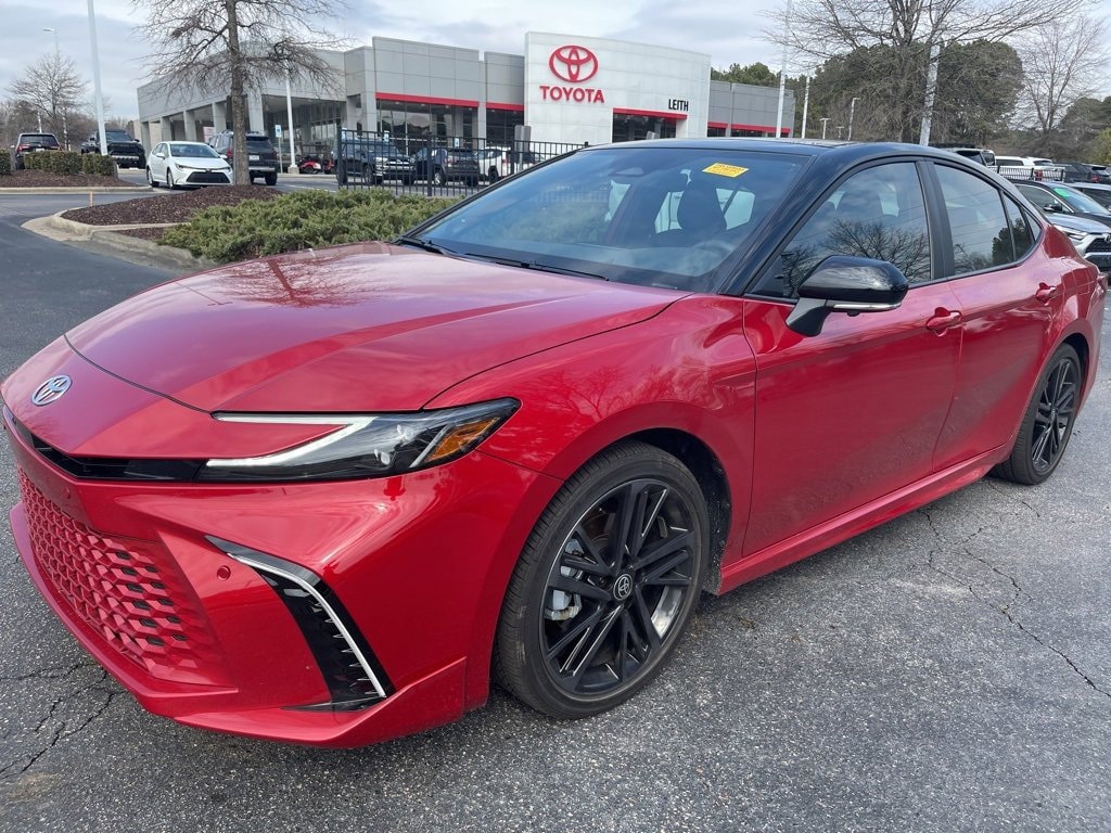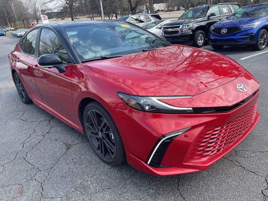 Priced below KBB Fair Purchase Price! Clean CARFAX. CARFAX One-Owner. Supersonic Red/Midnight Black Metallic 2025 Toyota Camry XSE FWD eCVT 2.5L 4-Cylinder 16V DOHC Clean Carfax 1 Owner/No Accident Vehicle, LOCAL TRADE IN, BACK UP CAMERA, LEATHER, HEATED SEATS, PANORAMIC SUNROOF, SMART KEY W PUSH BUTTON START, PRE-COLLISION SYSTEM W PEDESTRIAN DETECTION, FULL-SPEED RANGE DYNAMIC RADAR CRUISE CONTROL, LANE DEPARTURE ALERT W STEERING ASSIST, BLIND SPOT MONITOR W REAR CROSS-TRAFFIC ALERT, APPLE CARPLAY & ANDROID AUTO, 1-OWNER, NO ACCIDENTS, MUST SEE!, 2.5L 4-Cylinder 16V DOHC, Black w/Leather Seat Trim, 10 Color Head-Up Display, ABS brakes, Air Conditioning, AM/FM radio: SiriusXM, Apple CarPlay/Android Auto, Auto High-beam Headlights, Auto-dimming Rear-View mirror, Automatic temperature control, Digital Key Compatibility, Driver Attention Monitor, Electronic Stability Control, Exterior Parking Camera Rear, Four wheel independent suspension, Front & Rear Parking Assist w/Automatic Braking, Front Cross-Traffic Alert, Front dual zone A/C, Fully automatic headlights, Garage door transmitter: HomeLink, Heated Front Bucket Seats, Heated steering wheel, Lane Change Assist, Leather Shift Knob, Leather steering wheel, Outside temperature display, Panoramic Glass Roof, Panoramic View Monitor, Power driver seat, Power steering, Power windows, Premium Plus Package, Radio: Toyota Audio Multimedia w/12.3 Touchscreen, Radio: Toyota Audio Multimedia w/JBL, Rear Cross-Traffic Braking, Rear seat center armrest, Rear window defroster, Remote keyless entry, Steering wheel mounted audio controls, Telescoping steering wheel, Tilt steering wheel, Traction control, Traffic Jam Assist, Turn signal indicator mirrors, Ventilated Front Seats, Wheels: 19 Smoke Gray & Black-Finished Alloy.